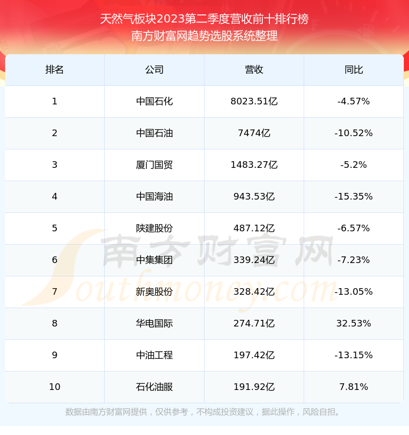 按照南方财富网趋势选股系统统计,该股所属板块为天然气板块,该板块共有158只股票,陕建股份2023第二季度营收在该板块中排名为第5名,该板块2023第二季度营收排名前十的股票如下表: