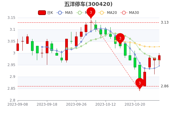 10月27日消息,五洋停车今年来涨幅下跌-1.34%,截至下午3点收盘,该股报2.990元,涨0.34%,换手率1.05%。