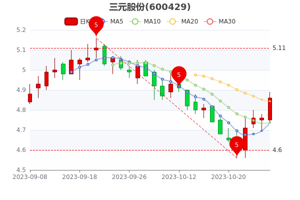 10月27日收盘消息,三元股份5日内股价上涨5.35%,截至收盘,该股报4.860元,涨2.1%,总市值为73.7亿元。