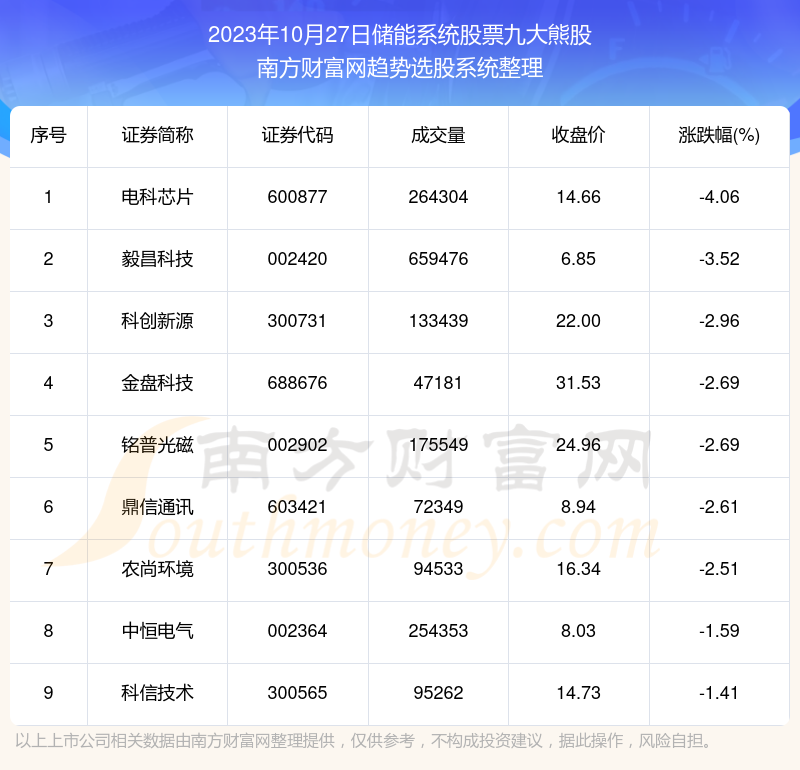 以上内容就是对【炒股配资平台 数据解盘|2023年10月27日储能系统股票九大熊股一览】的解答,如果解决了您的问题欢迎把链接分享给朋友(https://www.youge168.com/mod_article-article_content-article_id-49433.html)
