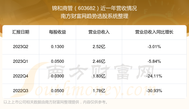 A股上市公司锦和商管(代码:603682)发布2023年第二季度财报,公司2023年第二季度归属于上市公司股东的净利润为6228.27万元,净利润同比增长96.05%,环比增长168.65%。