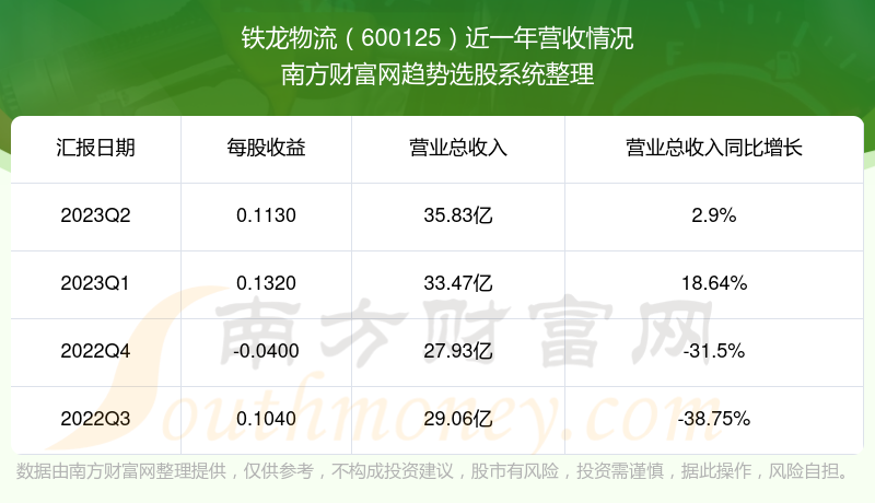 铁龙物流股票近一年营收情况如下表: