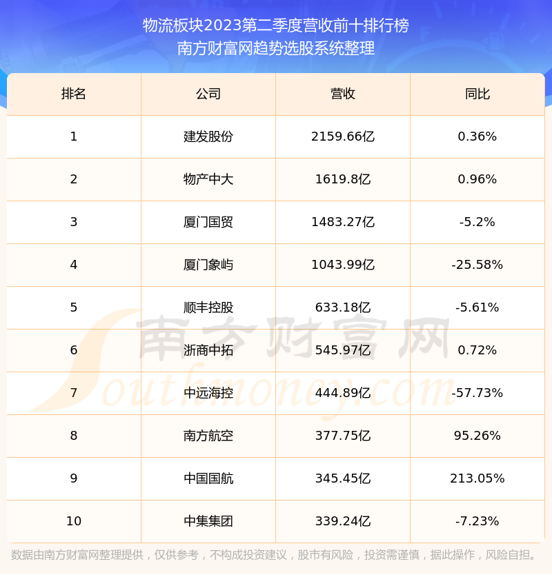 按照南方财富网趋势选股系统统计,该股所属板块为物流板块,该板块共有77只股票,铁龙物流2023第二季度营收在该板块中排名为第34名,该板块2023第二季度营收排名前十的股票如下表: