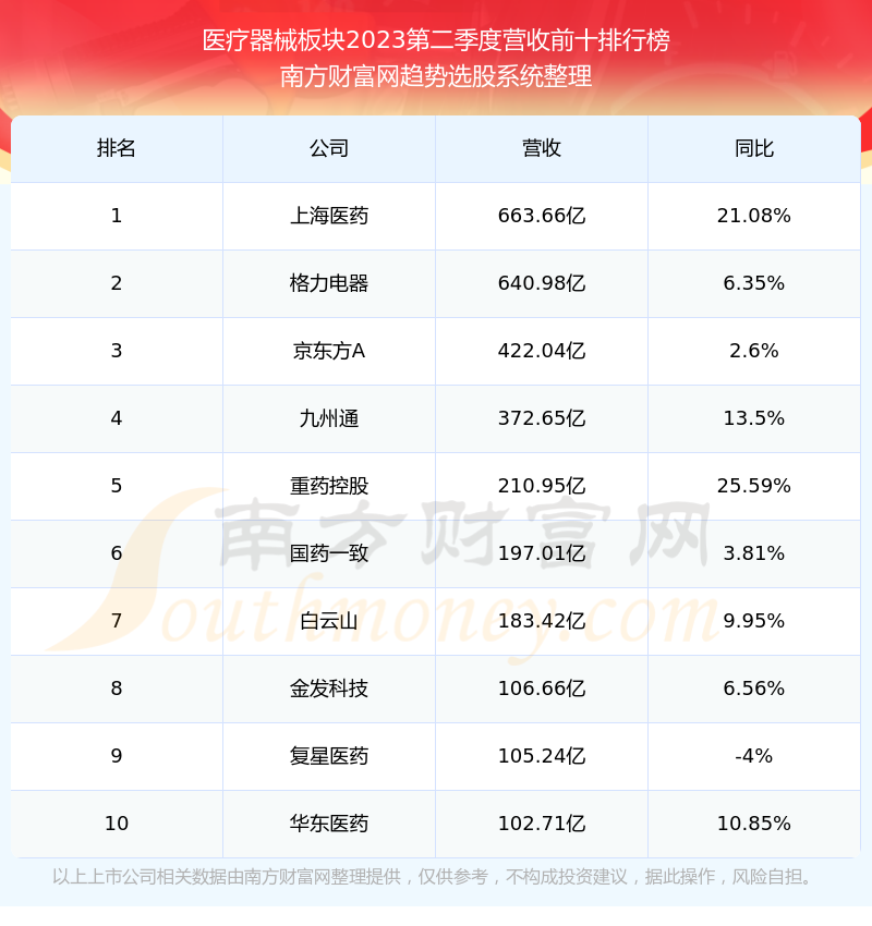 按照南方财富网趋势选股系统统计,该股所属板块为医疗器械板块,该板块共有394只股票,安图生物2023第二季度营收在该板块中排名为第91名,该板块2023第二季度营收排名前十的股票如下表: