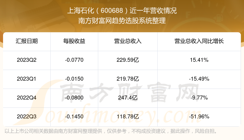 上海石化股票近一年营收情况如下表: