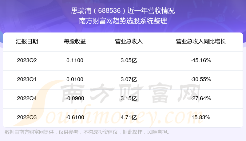 思瑞浦2023年第二季度财报显示,公司主营收入3.05亿元,同比-45.16%;归母净利润1244.79万元,同比-91.33%;扣非净利润-1116.49万元,同比-109.29%;