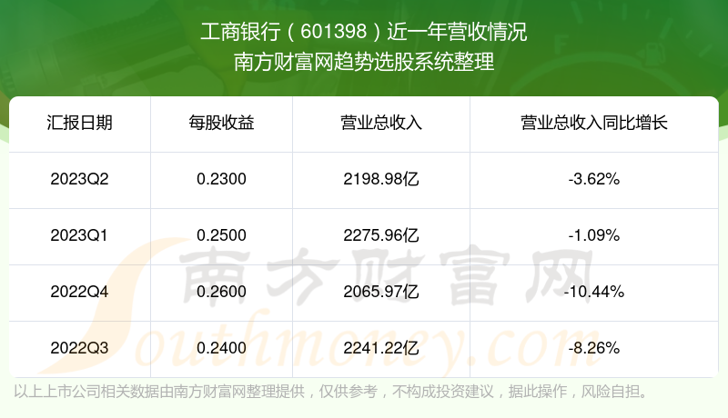 按照南方财富网趋势选股系统统计,该股所属板块为银行板块,该板块共有44只股票,工商银行2023第二季度营收在该板块中排名为第2名,该板块2023第二季度营收排名前十的股票如下表: