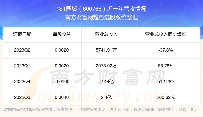 一、*ST园城(600766)股票营收情况