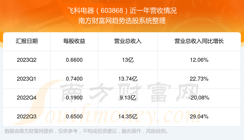按照南方财富网趋势选股系统统计,该股所属板块为家电行业板块,该板块共有63只股票,飞科电器2023第二季度营收在该板块中排名为第25名,该板块2023第二季度营收排名前十的股票如下表: