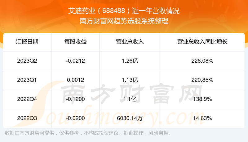 艾迪药业披露了2023年第二季度财报。报告显示,艾迪药业2023年第二季度实现营收1.26亿元,同比226.08%;归母净利润-1008.61万元,同比78.02%。