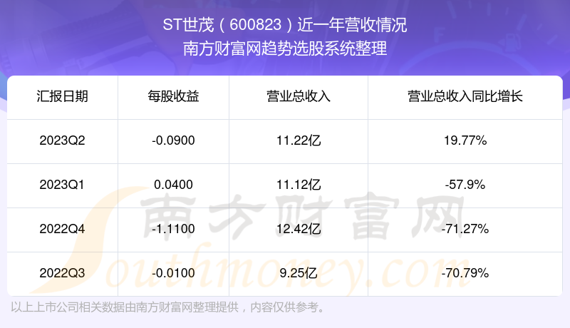 ST世茂股票近一年营收情况如下表: