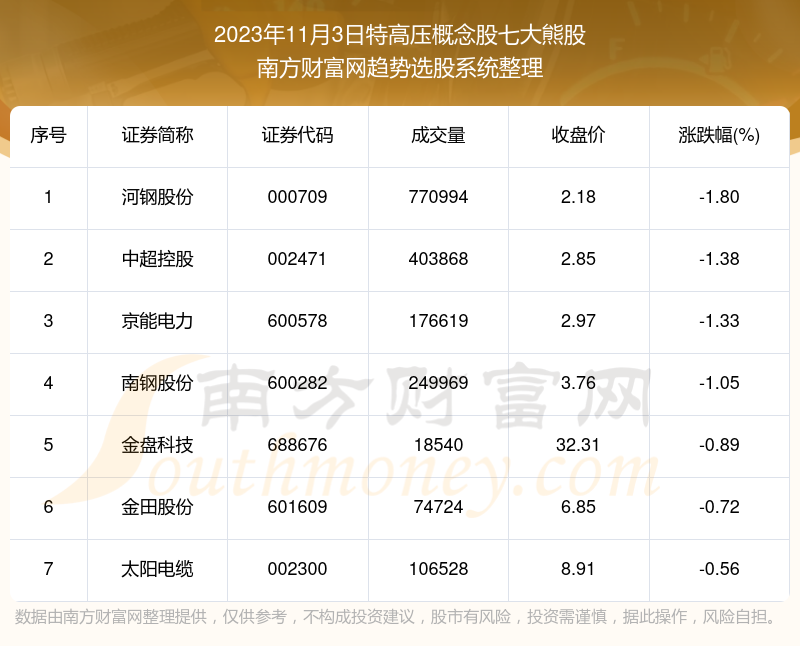 以上内容就是对【配资网 板块复盘|2023年11月3日特高压概念股七大熊股】的解答,如果解决了您的问题欢迎把链接分享给朋友(https://www.youge168.com/mod_article-article_content-article_id-49833.html)