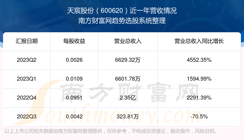 天宸股份股票近一年营收情况如下表: