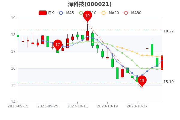 11月3日消息,深科技5日内股价上涨6.8%,该股最新报16.760元涨4.03%,成交12.13亿元,换手率4.73%。