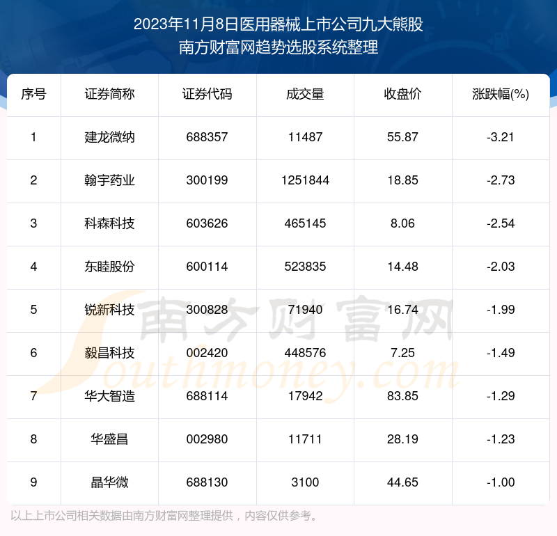 以上内容就是对【在线炒股配资 【数据复盘】医用器械上市公司2023年11月8日九大熊股】的解答,如果解决了您的问题欢迎把链接分享给朋友(https://www.youge168.com/mod_article-article_content-article_id-49961.html)