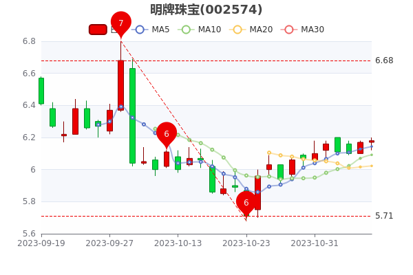从营收入来看:2023年第二季度,明牌珠宝公司营收约9.39亿元,同比增长46.36%;净利润约1079.64万元,同比增长1509.97%;基本每股收益0.04元。