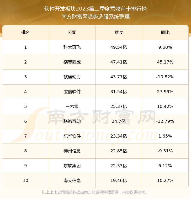 按照南方财富网趋势选股系统统计,该股所属板块为软件开发板块,该板块共有192只股票,致远互联2023第二季度营收在该板块中排名为第84名,该板块2023第二季度营收排名前十的股票如下表: