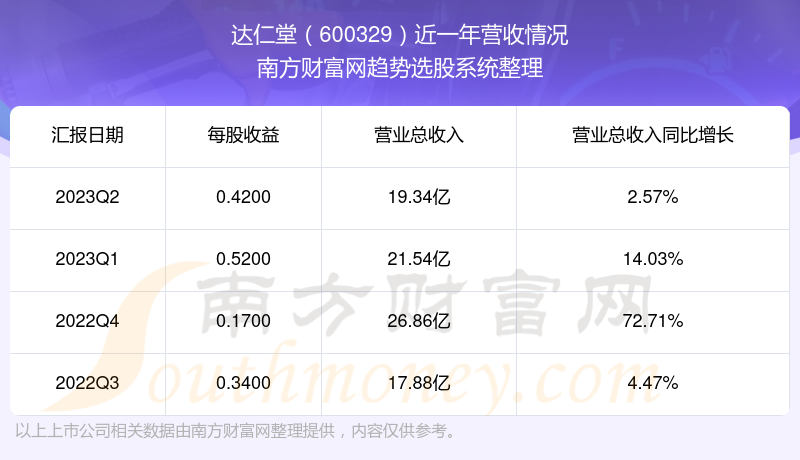 一、达仁堂(600329)股票营收情况