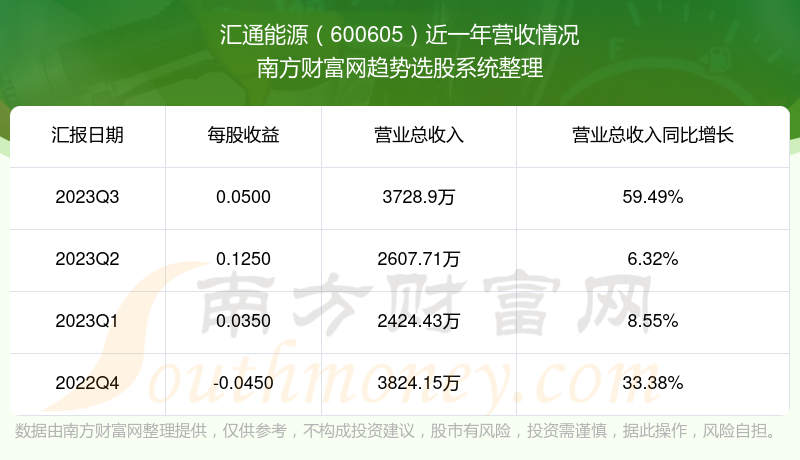 汇通能源股票近一年营收情况如下表: