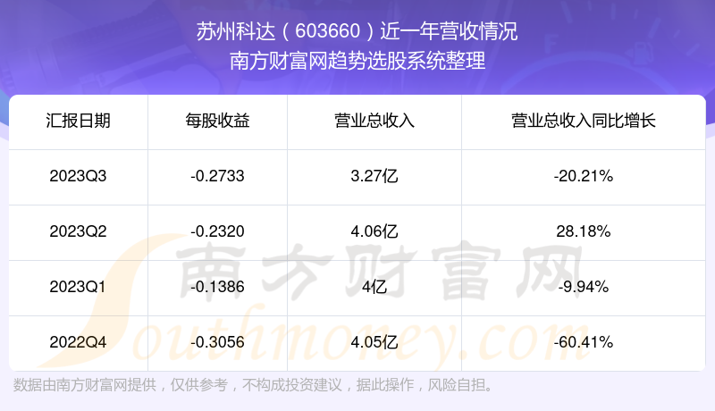 苏州科达2023年第三季度显示,公司主营收入3.27亿元,同比-20.21%;归母净利润-1.41亿元,同比12.31%;扣非净利润-1.44亿元,同比11.01%。