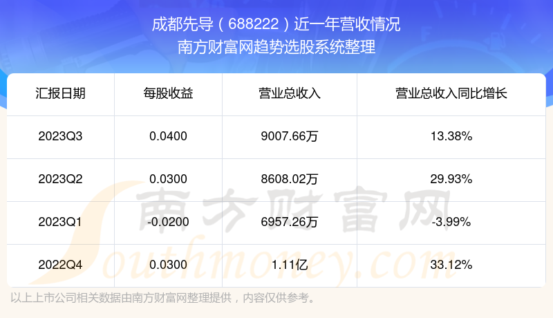 成都先导股票近一年营收情况如下表:
