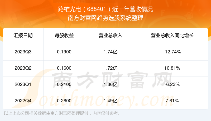 财报显示,2023年第三季度路维光电营收1.74亿元,同比增长-12.74%,净利润3771.56万元,同比增长-3.43%。