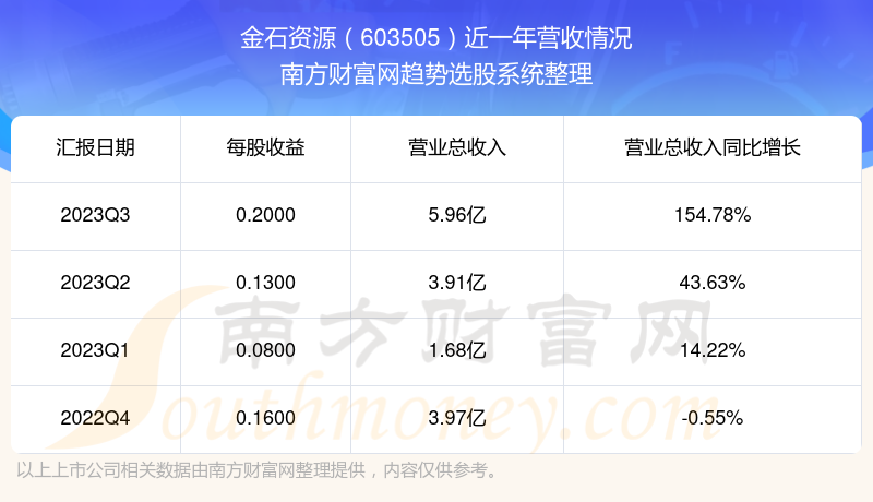 金石资源股票近一年营收情况如下表: