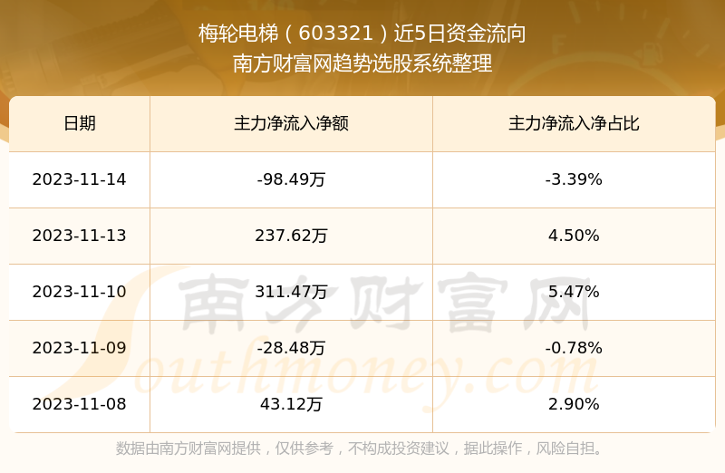 二、梅轮电梯(603321)近期盘面、资金面情况