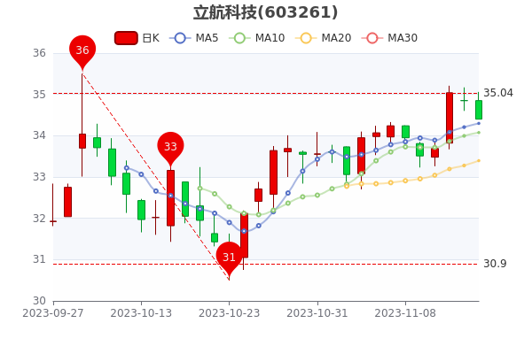 11月15日早盘最新消息,立航科技5日内股价上涨2.58%,截至10时14分,该股报34.680元跌1.23% 。
