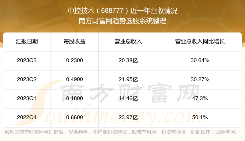 中控技术股票近一年营收情况如下表: