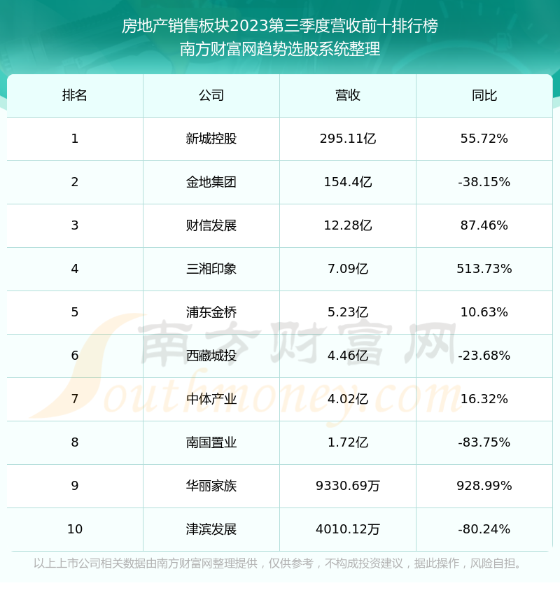 按照南方财富网趋势选股系统统计,该股所属板块为房地产销售板块,该板块共有13只股票,ST世茂2023第三季度营收在该板块中排名为第13名,该板块2023第三季度营收排名前十的股票如下表:
