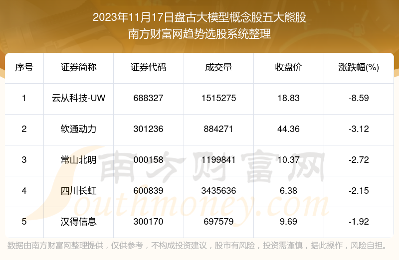 以上内容就是对【正规配资公司 板块复盘|2023年11月17日盘古大模型概念股五大熊股】的解答,如果解决了您的问题欢迎把链接分享给朋友(https://www.youge168.com/mod_article-article_content-article_id-50387.html)