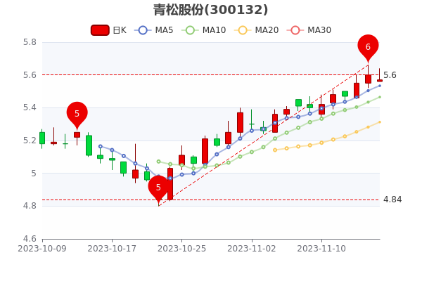 青松股份最新报价5.570元,7日内股价上涨3.05%;今年来涨幅上涨5.57%,市盈率为-3.88。