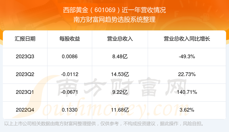 西部黄金股票近一年营收情况如下表:
