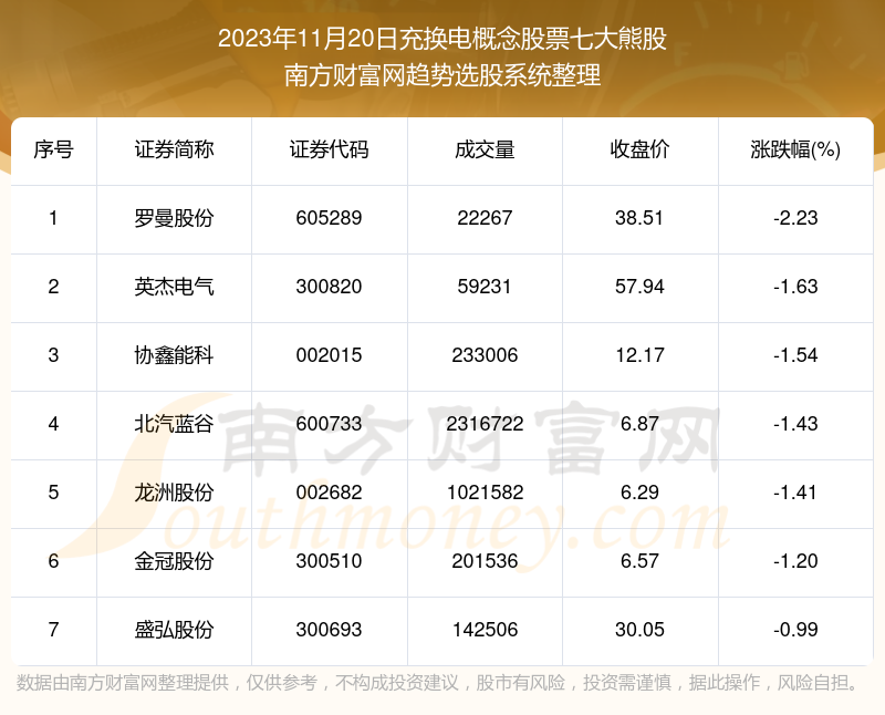 以上内容就是对【正规配资 数据解盘|2023年11月20日充换电概念股票七大熊股名单】的解答,如果解决了您的问题欢迎把链接分享给朋友(https://www.youge168.com/mod_article-article_content-article_id-50621.html)