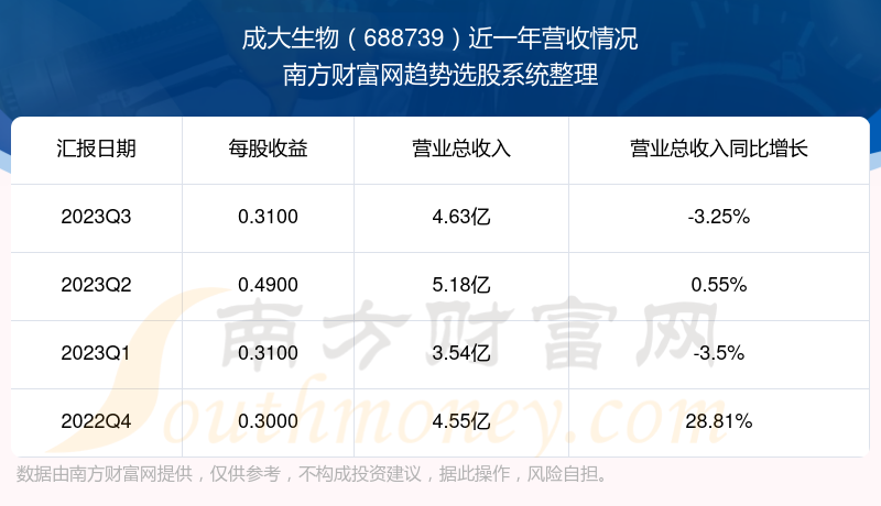 成大生物股票近一年营收情况如下表: