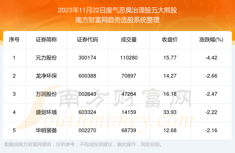 以上内容就是对【线上股票配资 数据解盘|2023年11月22日废气恶臭治理股五大熊股名单】的解答,如果解决了您的问题欢迎把链接分享给朋友(https://www.youge168.com/mod_article-article_content-article_id-50720.html)