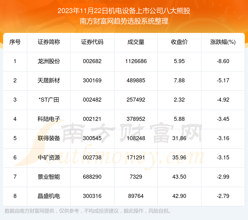 以上内容就是对【在线配资开户 【数据复盘】机电设备上市公司2023年11月22日八大熊股】的解答,如果解决了您的问题欢迎把链接分享给朋友(https://www.youge168.com/mod_article-article_content-article_id-50730.html)
