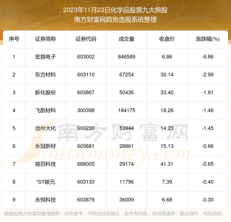 以上内容就是对【成都配资 板块复盘|2023年11月23日化学品股票九大熊股名单】的解答,如果解决了您的问题欢迎把链接分享给朋友(https://www.youge168.com/mod_article-article_content-article_id-50788.html)