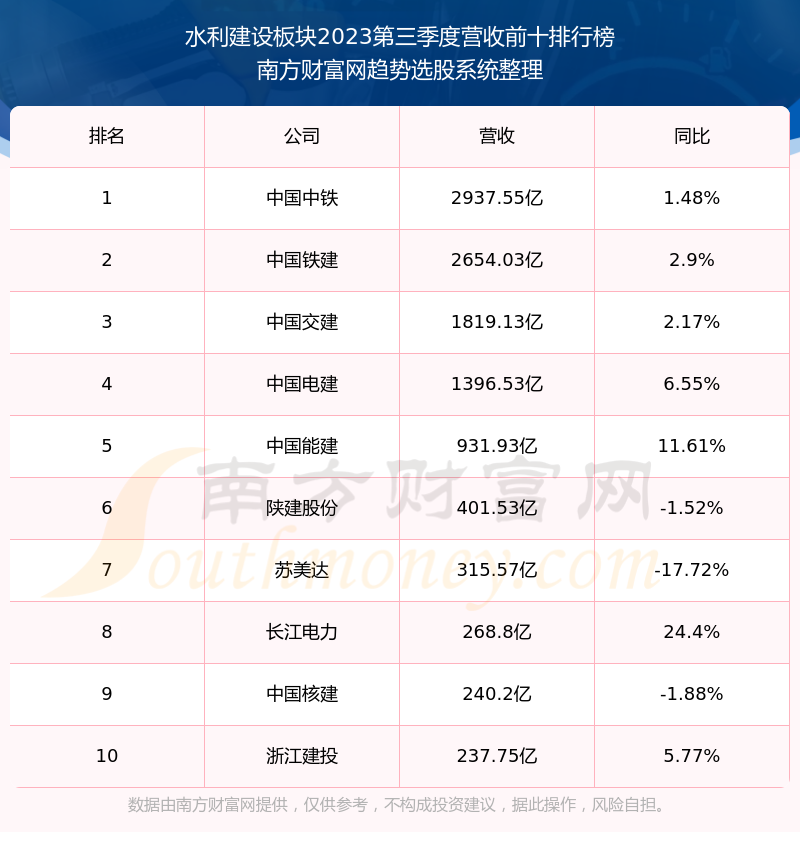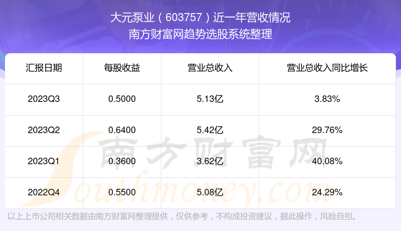 按照南方财富网趋势选股系统统计,该股所属板块为水利建设板块,该板块共有128只股票,大元泵业2023第三季度营收在该板块中排名为第76名,该板块2023第三季度营收排名前十的股票如下表: