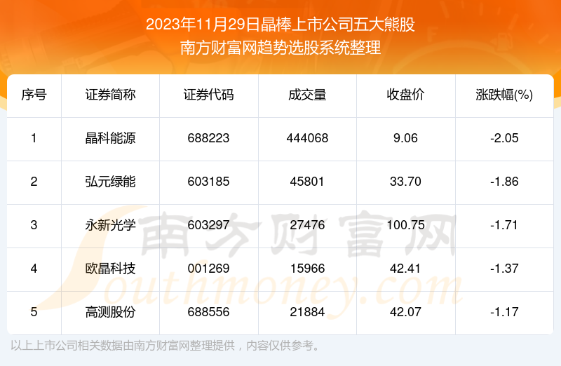 以上内容就是对【至尊配资 数据解盘|2023年11月29日晶棒上市公司五大熊股名单】的解答,如果解决了您的问题欢迎把链接分享给朋友(https://www.youge168.com/mod_article-article_content-article_id-51126.html)