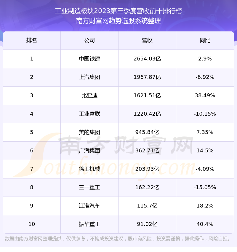 按照南方财富网趋势选股系统统计,该股所属板块为工业制造板块,该板块共有23只股票,瀚叶股份2023第三季度营收在该板块中排名为第23名,该板块2023第三季度营收排名前十的股票如下表: