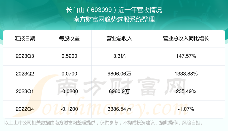 长白山发布2023年第三季度财报。实现总营收3.3亿元,同比增长147.57%;扣非净利润同比增长211.48%至1.39亿元。