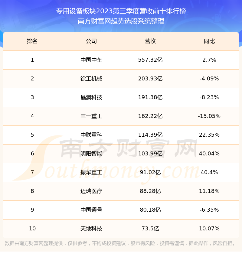 按照南方财富网趋势选股系统统计,该股所属板块为专用设备板块,该板块共有436只股票,越剑智能2023第三季度营收在该板块中排名为第326名,该板块2023第三季度营收排名前十的股票如下表: