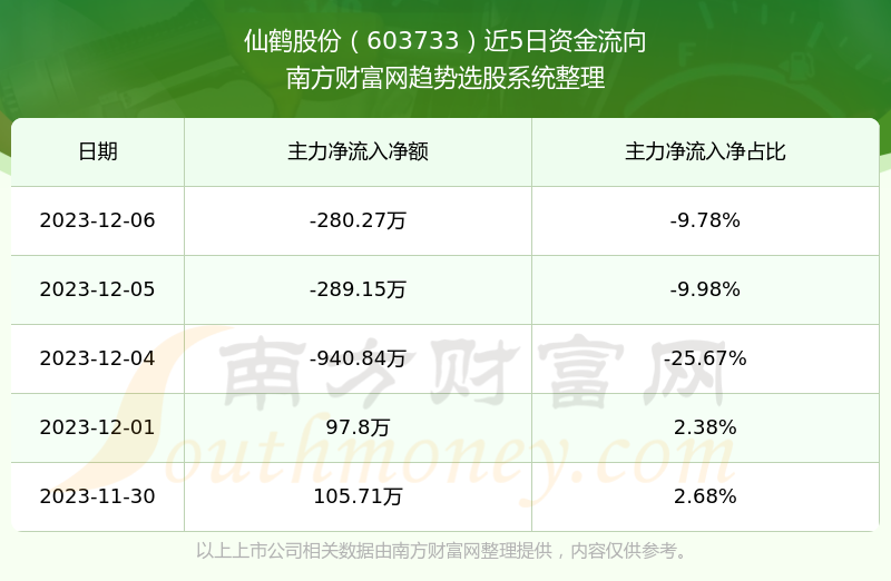 二、仙鹤股份(603733)近期盘面、资金面情况