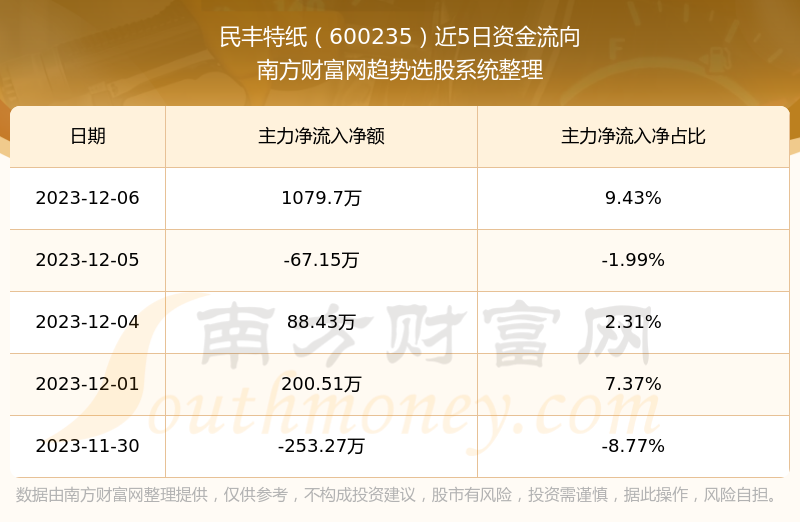 二、民丰特纸(600235)近期盘面、资金面情况