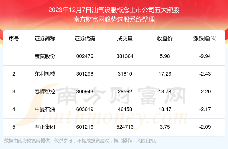 以上内容就是对【线上炒股配资 【盘后整理】油气设服概念上市公司2023年12月7日五大熊股(附股)】的解答,如果解决了您的问题欢迎把链接分享给朋友(https://www.youge168.com/mod_article-article_content-article_id-51520.html)