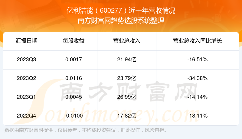 亿利洁能2023年第三季度财报显示,公司主营收入21.94亿元,同比-16.51%;归母净利润592.03万元,同比-97.38%;扣非净利润-1176.57万元,同比-105.72%。