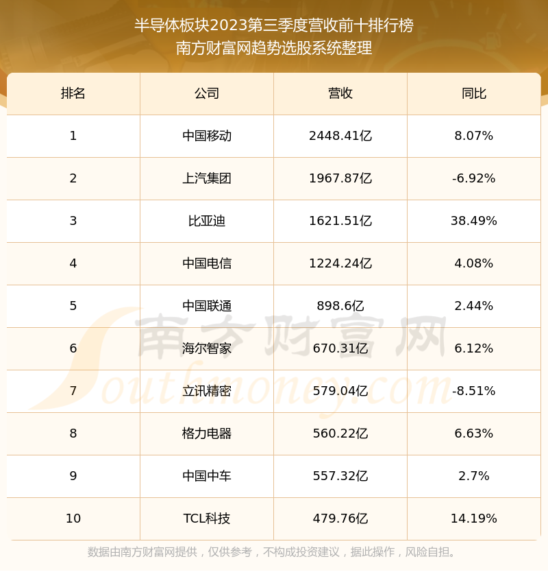 按照南方财富网趋势选股系统统计,该股所属板块为半导体板块,该板块共有487只股票,韦尔股份2023第三季度营收在该板块中排名为第39名,该板块2023第三季度营收排名前十的股票如下表: