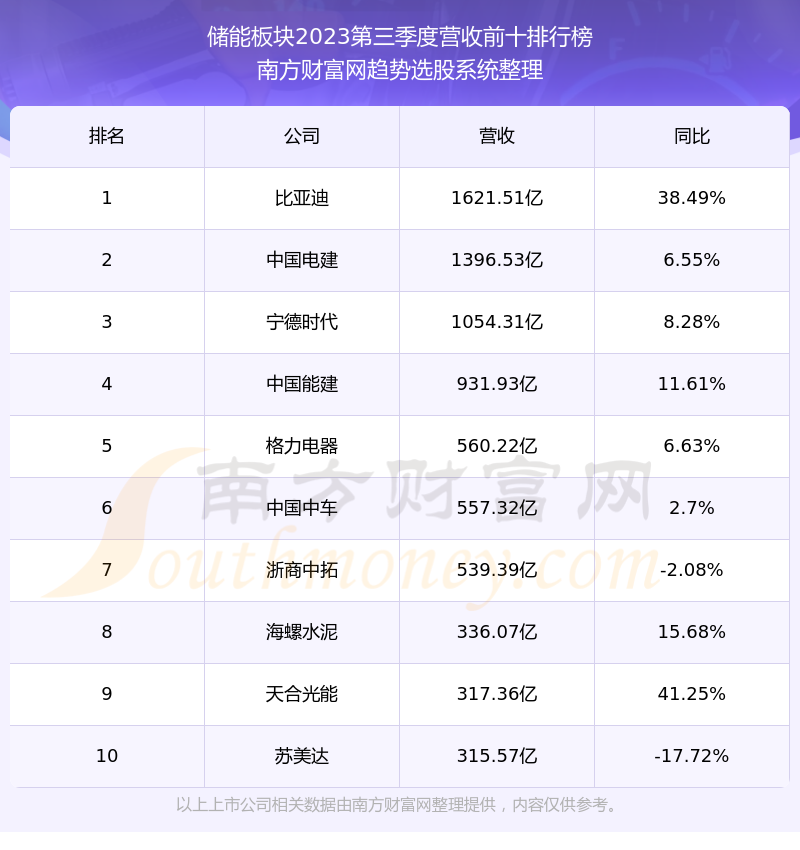 按照南方财富网趋势选股系统统计,该股所属板块为储能板块,该板块共有406只股票,国电南自2023第三季度营收在该板块中排名为第131名,该板块2023第三季度营收排名前十的股票如下表: